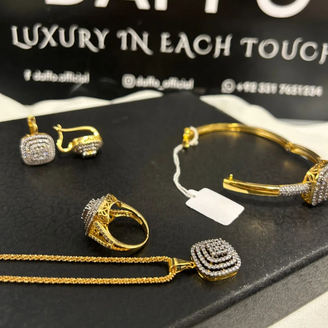 Shine like a star with our premium diamond style combo set, crafted for elegance and everyday glamour. This goldplated set includes: