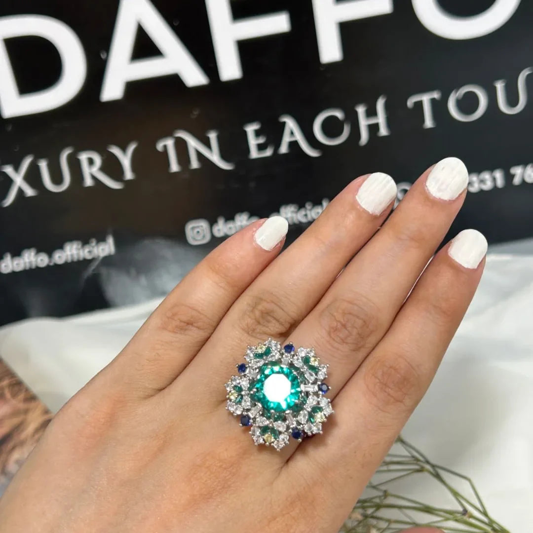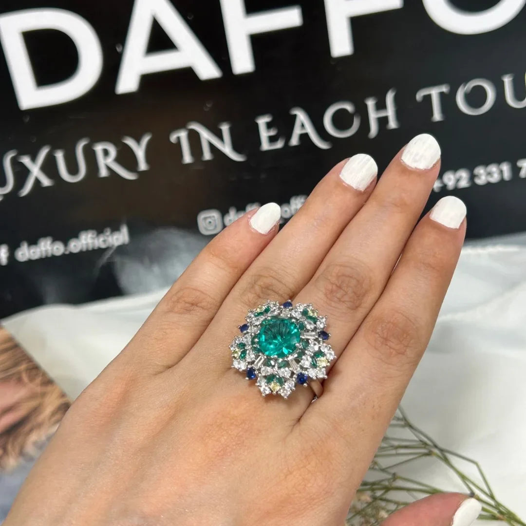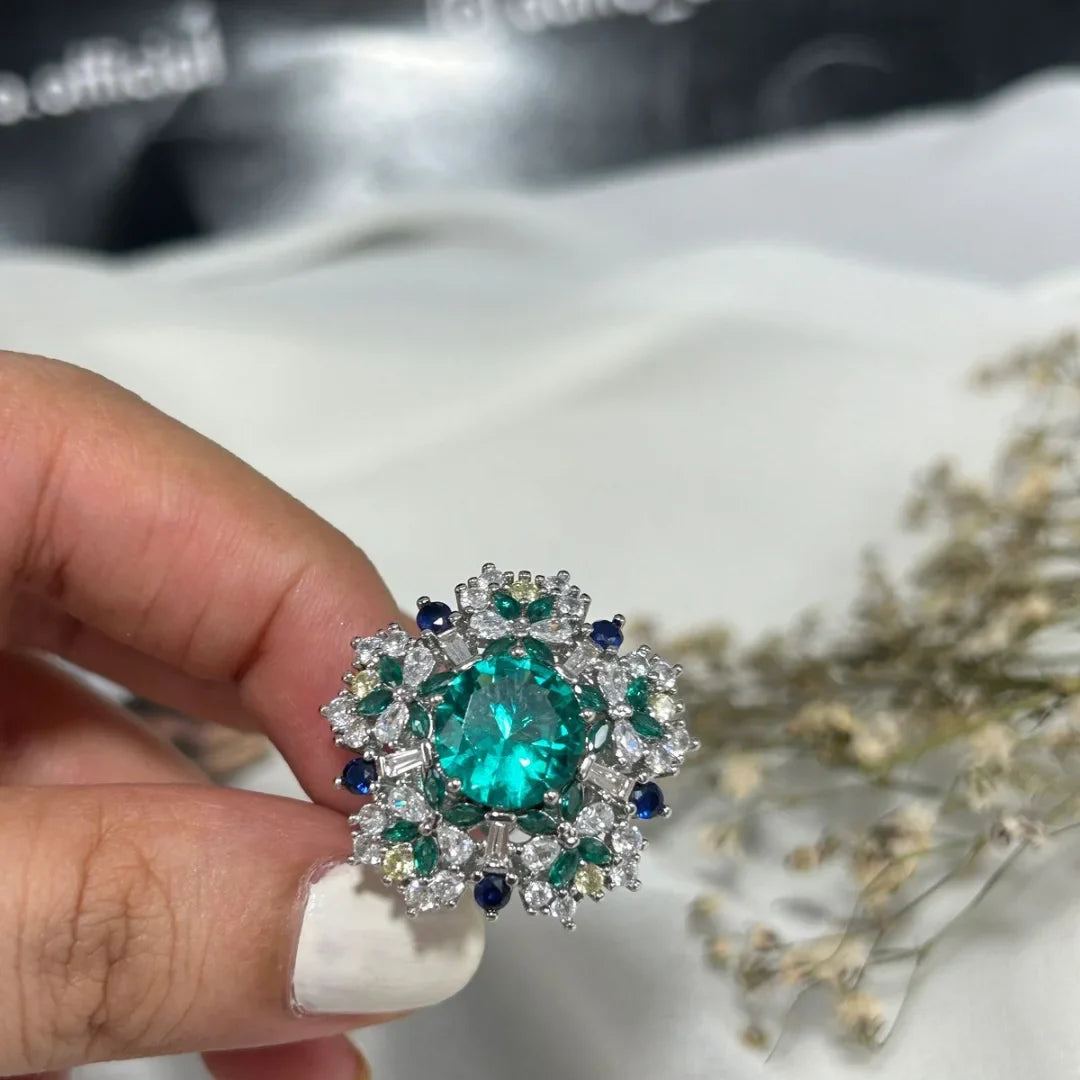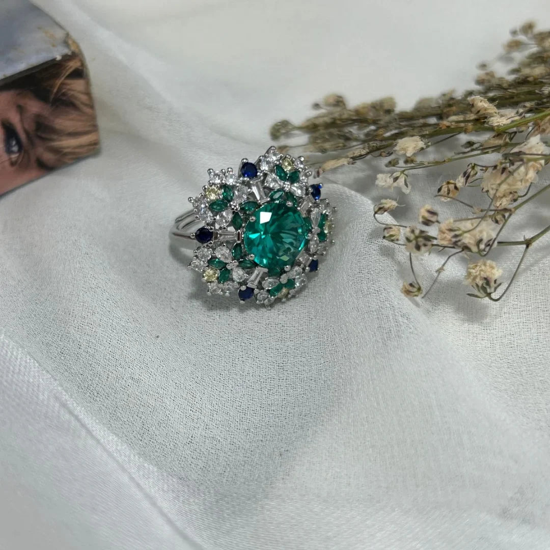 A captivating sea-green stone blooms at the center, shaped into a delicate flower that radiates freshness and charm. The adjustable band ensures a perfect fit, while its timeless design adds a splash of ocean elegance to any outfit."
