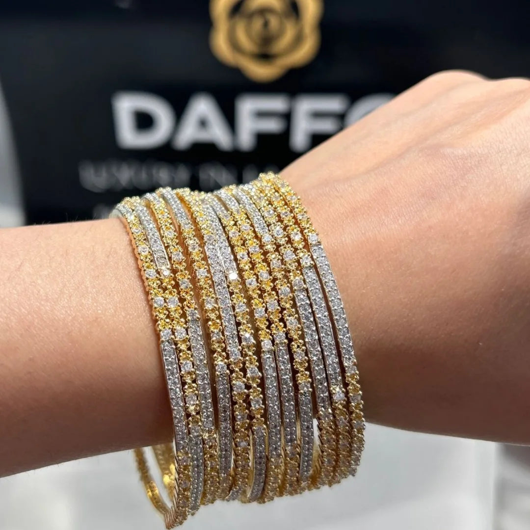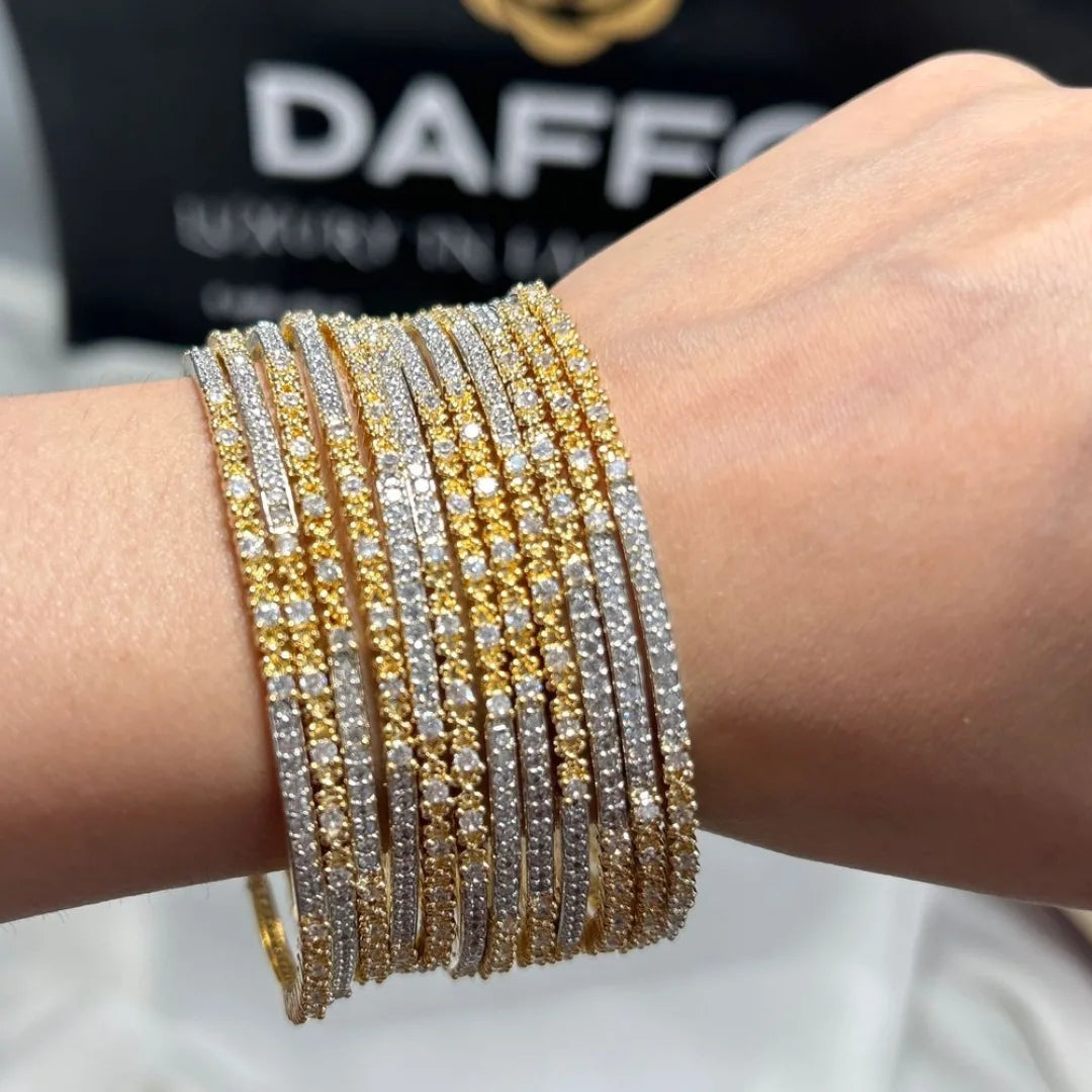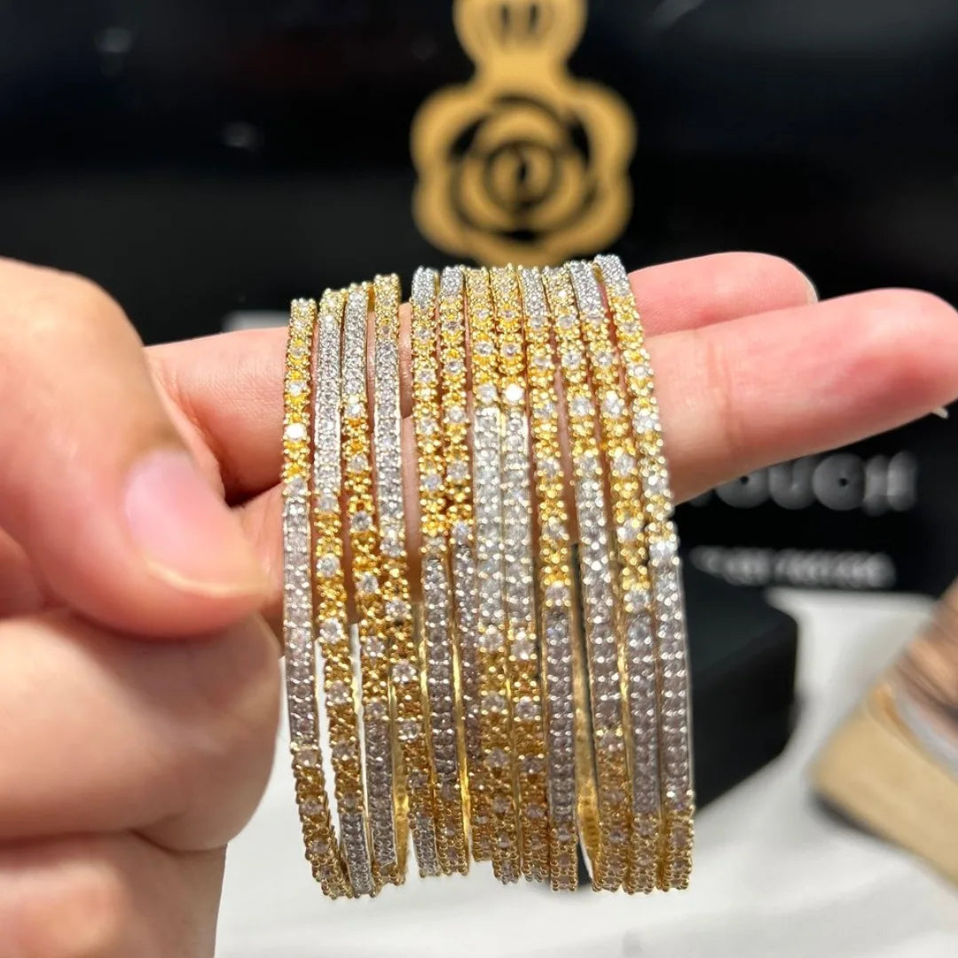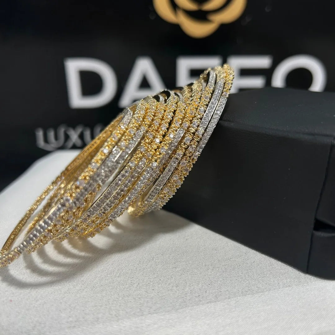Add timeless elegance to your look with our One-Carat Double Tone Bangles Set. This 12-piece collection blends silver and golden tones for a versatile style that pairs beautifully with any outfit — from casual chic to festive glam.